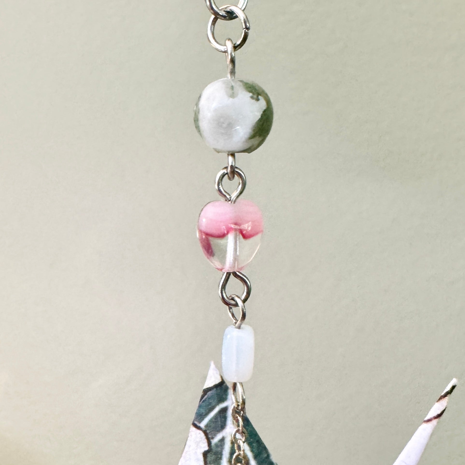 Origami Ornament #2146 - Small Crane with Stone and Glass Beads