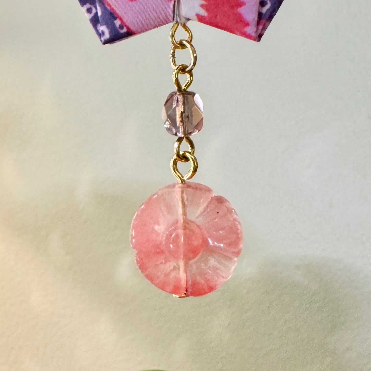 Hand crafted ornament made with origami paper cranes, beads, and jewelry.