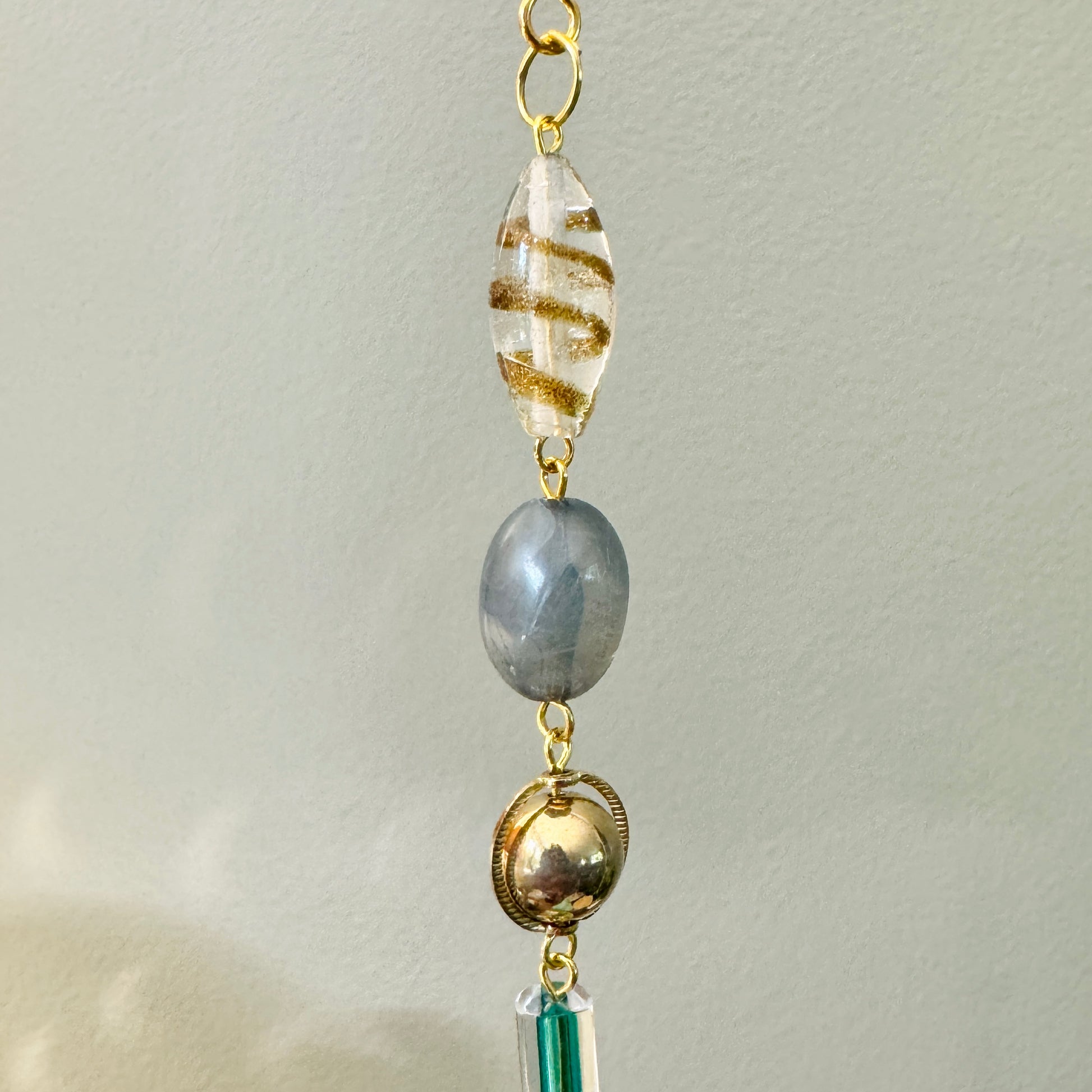 Ornaments are made using new and repurposed material salvaged from broken jewelry.